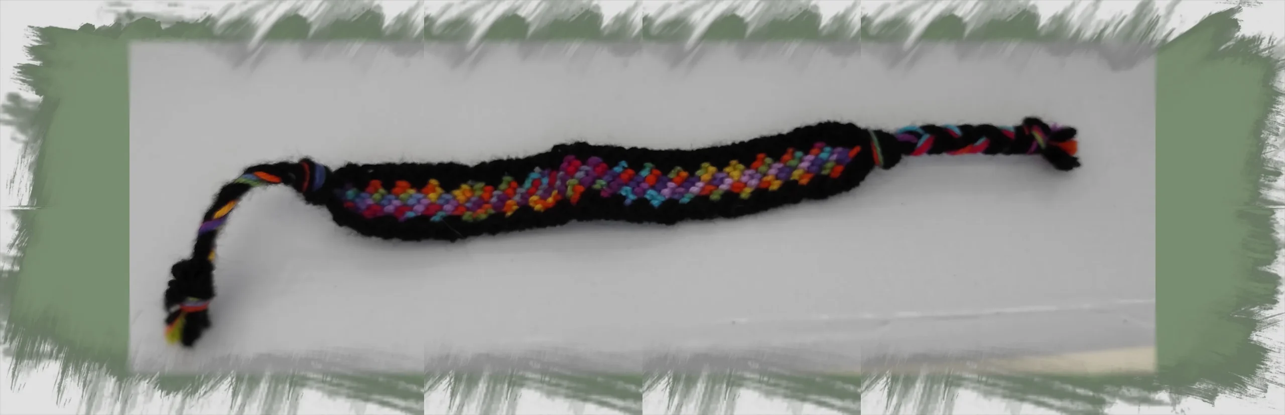 Bracelet brésilien noir et multicolore, réalisé en fil de coton et en fil synthétique.