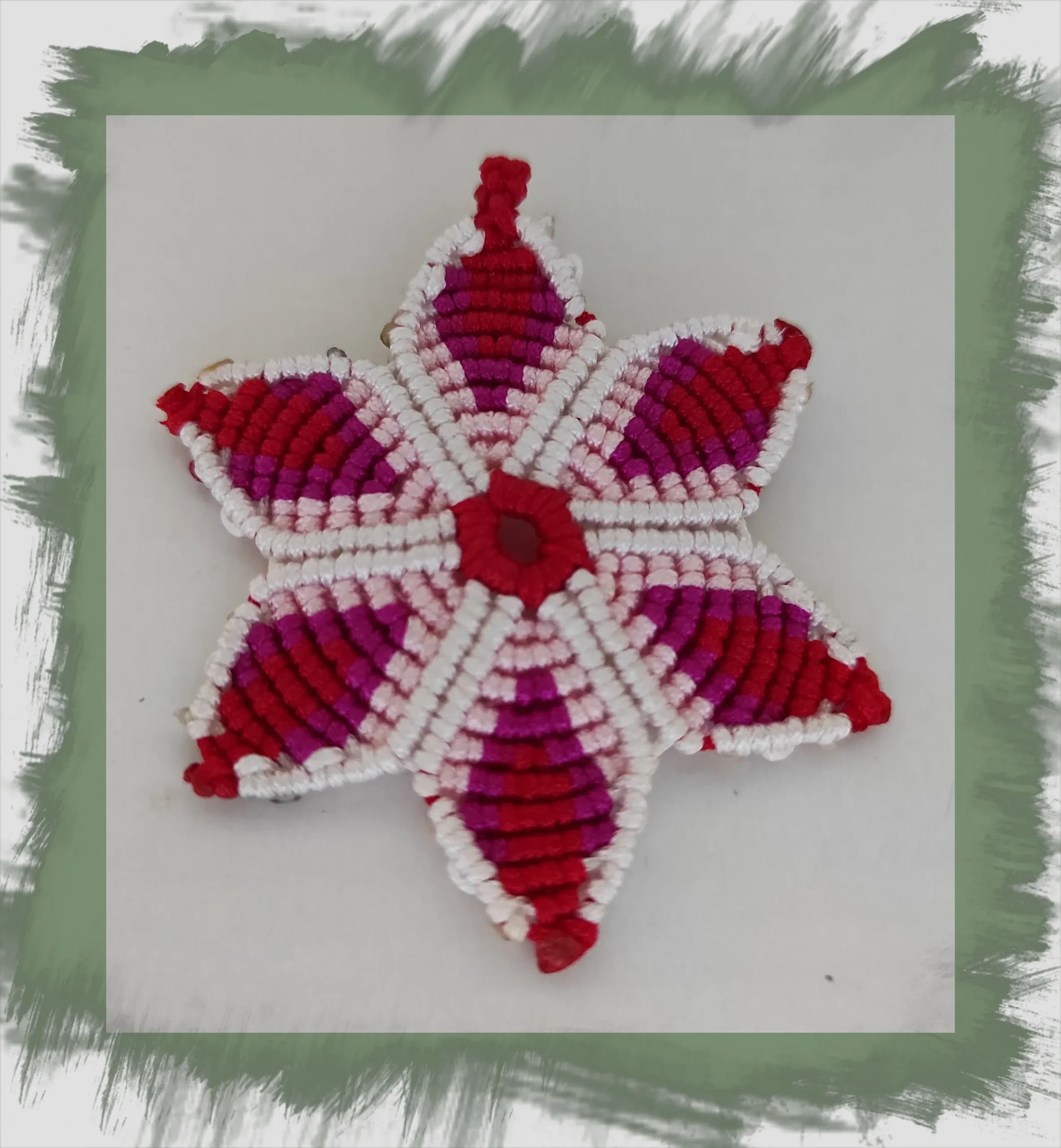 Porte-clés en macramé étoile rose, blanc, rouge, livré avec ou sans anneau.